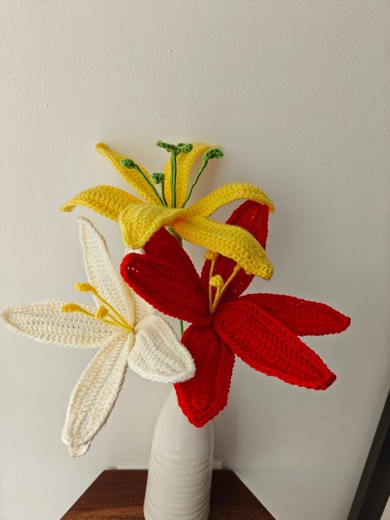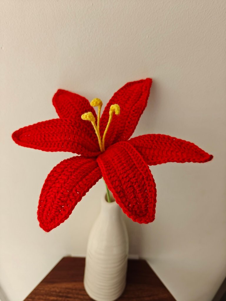 Enhance your space with this handmade crochet lily flower, or gift it to someone special as a symbol of purity, love, and elegance—an everlasting floral keepsake